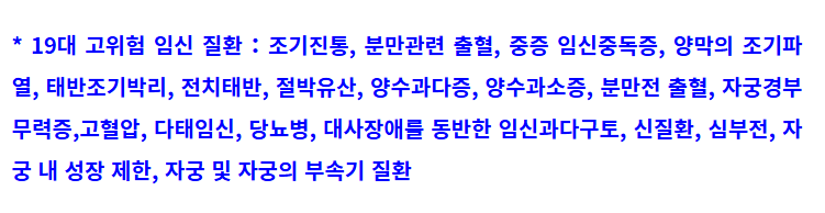 | 질환 총 개수 | 보건복지부 지정 19종 고위험 임신질환 |