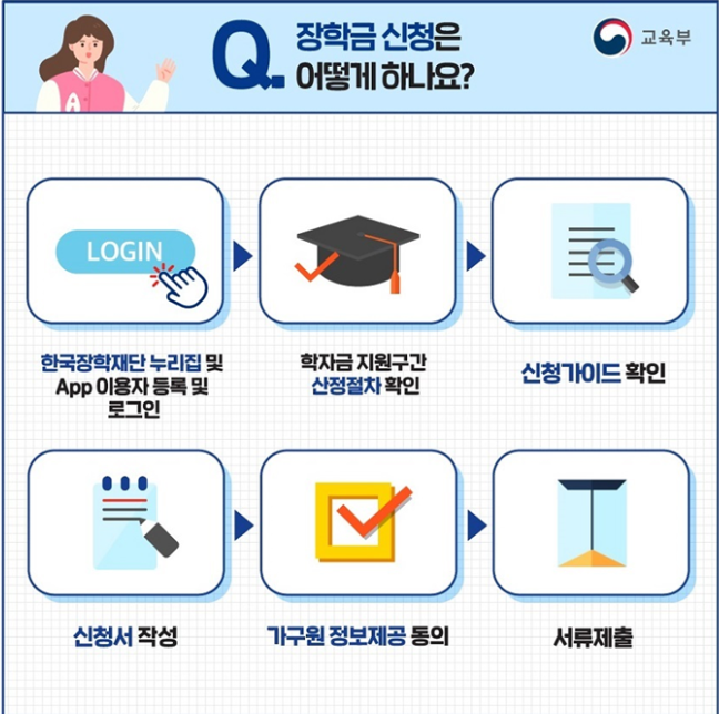 한국장학재단 홈페이지 또는 앱에서 로그인 후 신청서를 작성하면 됩니다.