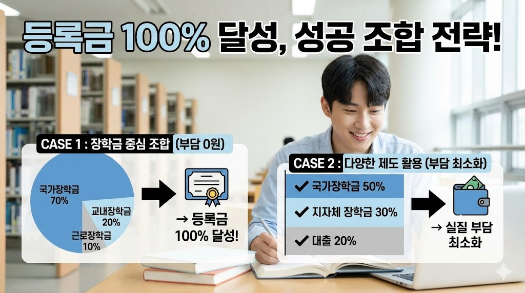→ 장학금 + 대출 병행 = 실질 등록금 0원 구조