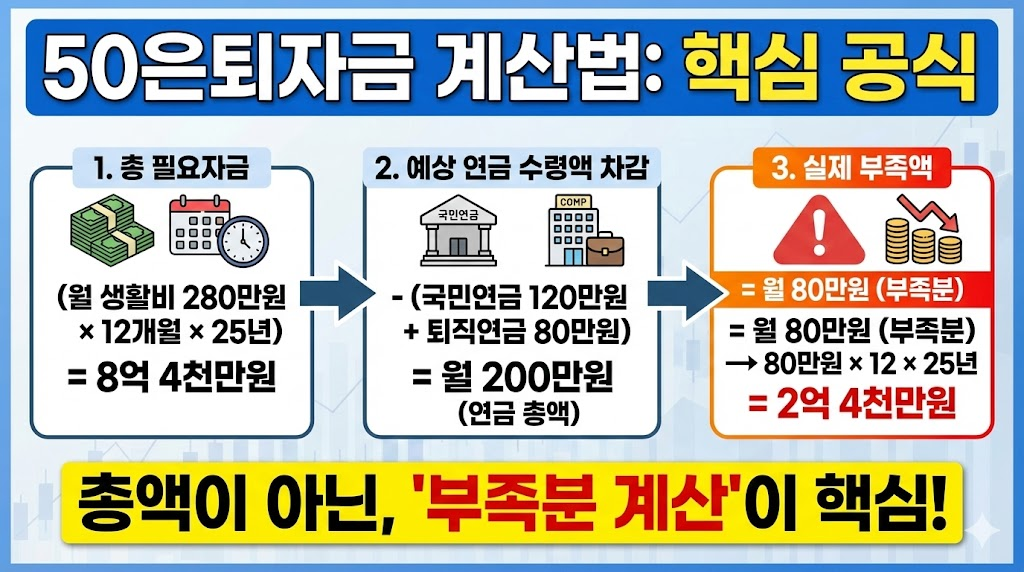 50은퇴자금 계산법은 총액이 아니라 ‘부족분 계산’이 핵심입니다.
