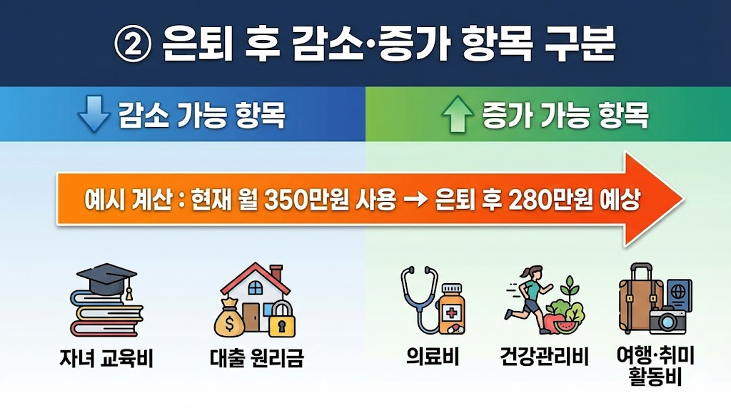 ② 은퇴 후 감소·증가 항목 구분
