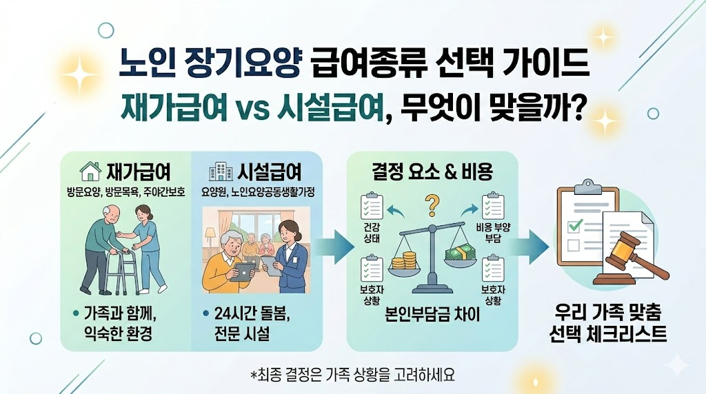노인 장기요양 급여종류(재가/시설) 선택은 단순히 비용 문제가 아닙니다.