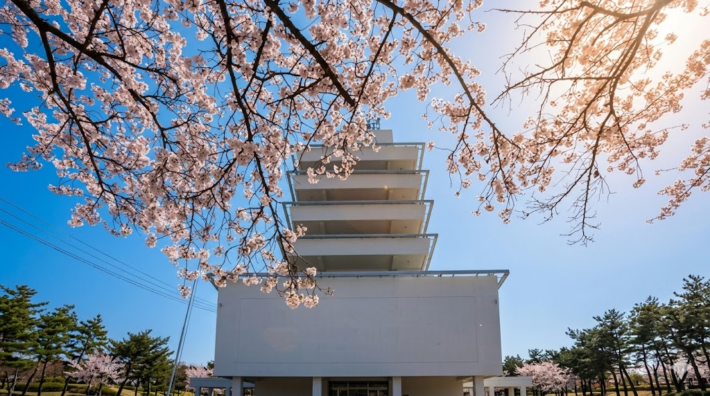 벚꽃으로 뒤덮인 도시 전경을 촬영할 수 있는 전망 명소입니다.