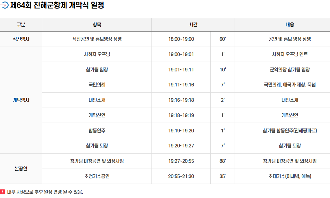 공식 퍼레이드 외에도 프린지 공연이 함께 진행됩니다. 소규모 군악 공연, 국악 공연, 거리 공연이 이어지면서 2026 진해군악의장페스티벌의 분위기를 더욱 풍성하게 만듭니다. 이동하면서 다양한 공연을 즐길 수 있어 체류 시간이 길어지는 것이 특징입니다.