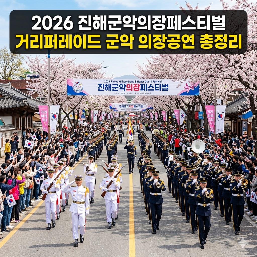 벚꽃이 절정을 이루는 3월 말부터 4월 초, 많은 사람들이 진해를 찾는 이유는 단순히 벚꽃 때문만은 아닙니다. 화려한 퍼레이드와 절도 있는 군악대 공연이 함께 펼쳐지는 2026 진해군악의장페스티벌은 매년 관람객들의 기대를 모으는 핵심 행사입니다. 특히 진해 군항제 군악 의장공연은 군악대의 힘찬 마칭과 의장대의 완벽한 동작이 어우러지며 일반 공연과는 다른 웅장한 분위기를 선사합니다.