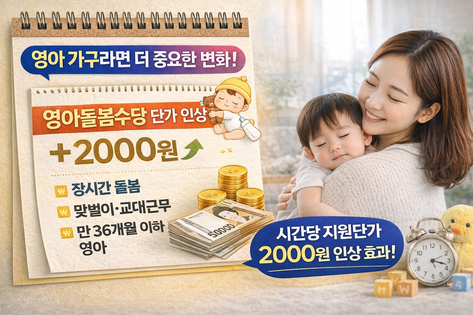 영아돌봄수당 2000원 인상 효과를 숫자 예시로 정리했습니다.